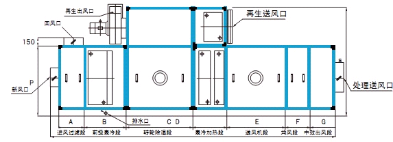 ■轉(zhuǎn)輪除濕段(包括干燥轉(zhuǎn)輪、再生風(fēng)機(jī)、再生加熱器、再生過(guò)濾器和再生閥門(mén))